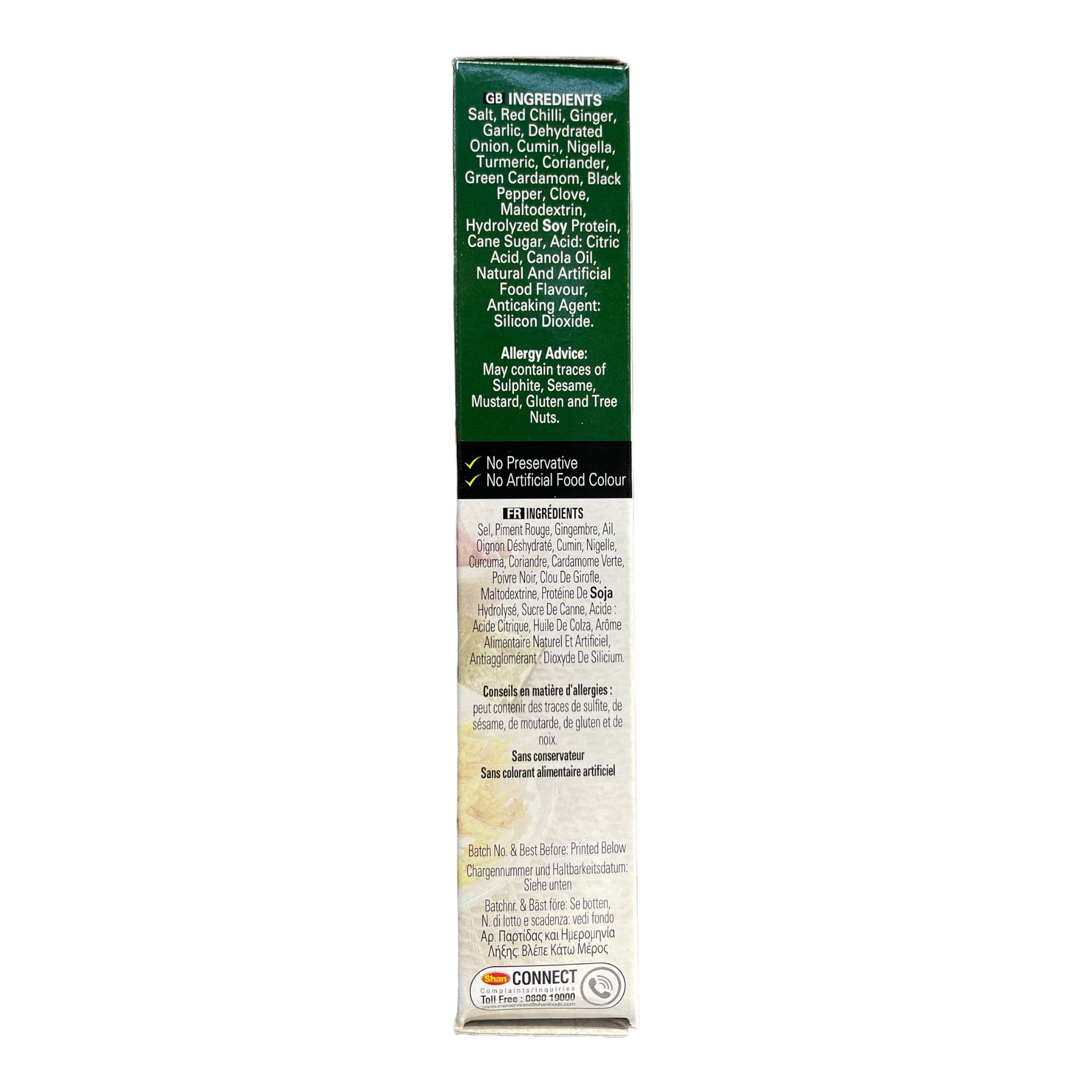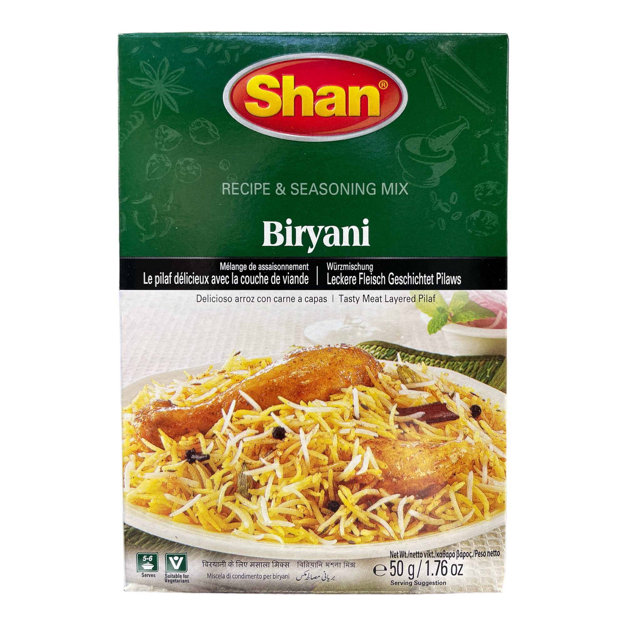 Shan Biryani Masala is a combination of aromatic spices that are used together with black pepper and chili to give ordinary rice a pleasant taste. The origins of this mixture can be traced back to the Mughal period. Biryani is usually served with curry and raita, a curd made from fresh green herbs.