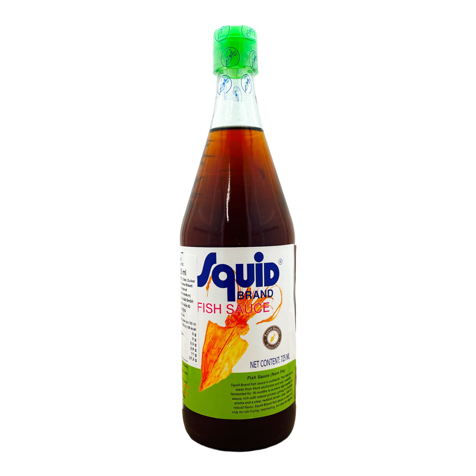 Squid Brand fish sauce is authentic Thai fish sauce, made from fresh anchovies and salt, naturally fermented for 18 months to achieve high quality fish sauce, rich with natural protein, giving it a fragrant aroma and a clear, reddish brown color. With its robust flavor, Squid Brand fish sauce is ideal not only for stir-frying, marinating, but also for dipping.