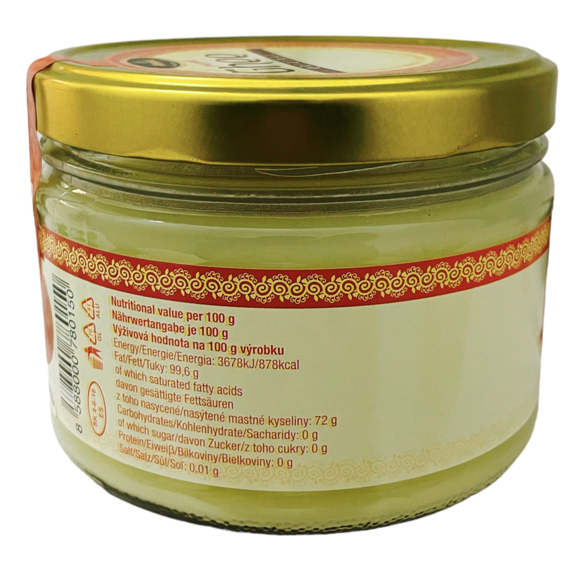 - The ghee comes in a 350g container and is made with only the finest ingredients.