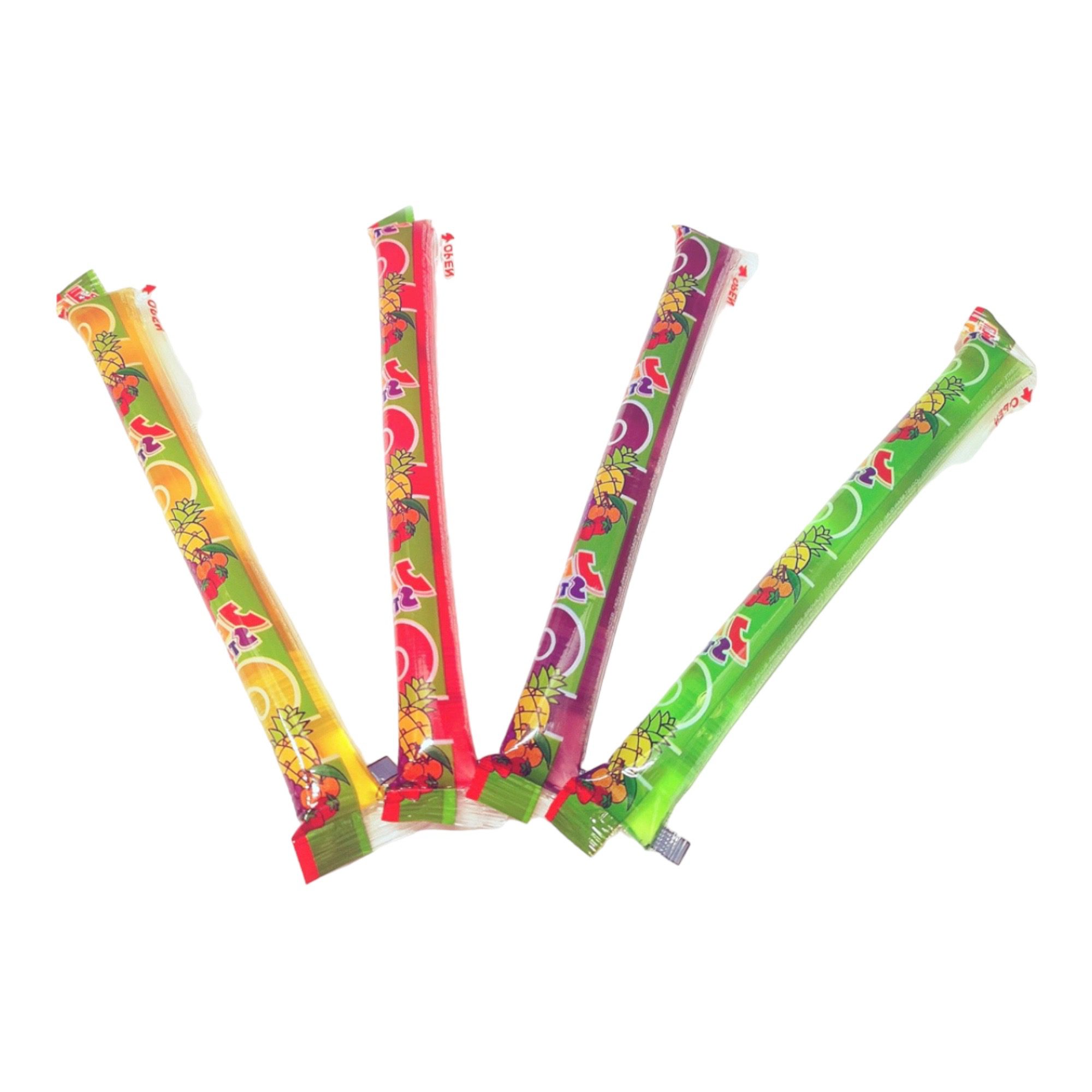 - They are long, thin straws filled with sweet and fruity jelly.