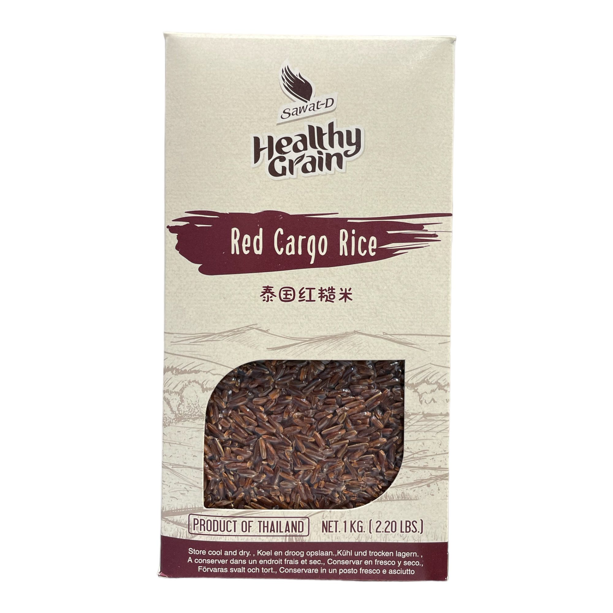 Red Cargo Rice SAWAT-D 1kg is a delicious and nutritious type of rice that is native to Thailand. It is a whole grain rice, which means that it retains all of its bran and germ layers. This gives Red Cargo Rice a nutty flavor and chewy texture, as well as a higher nutritional content than white rice. Red Cargo Rice is a good source of fiber, protein, vitamins, and minerals, and it is also low in fat and cholesterol.