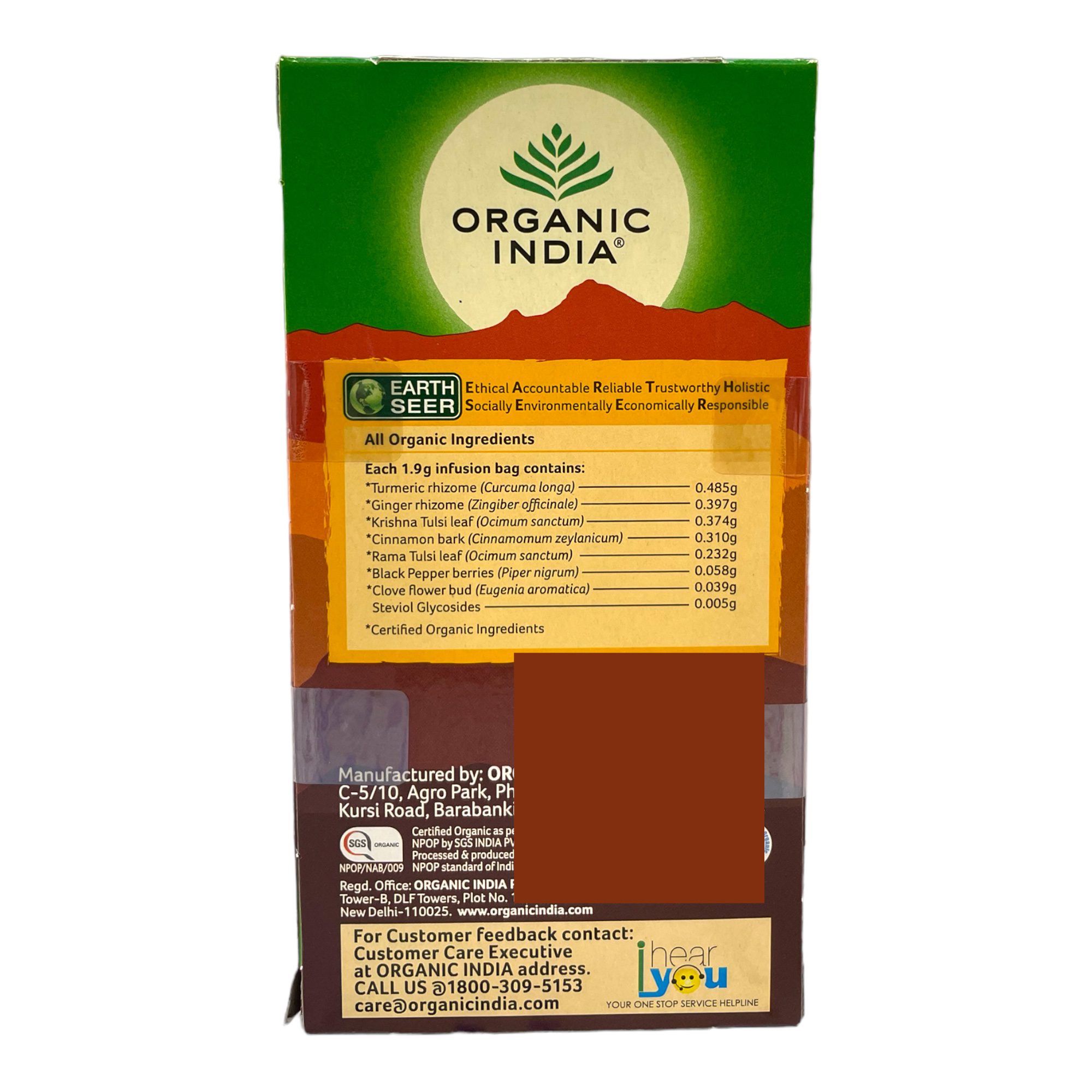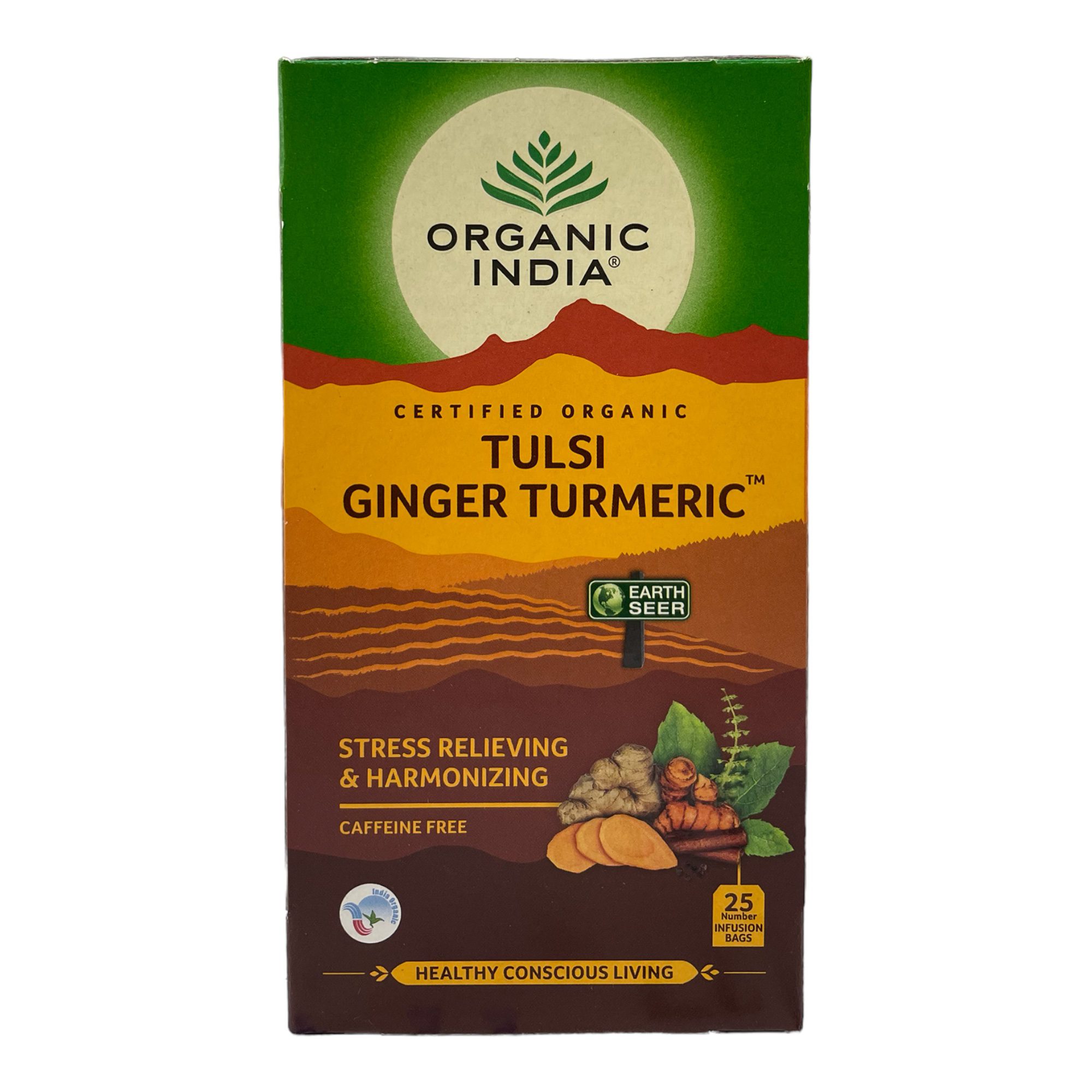 - Enjoy the balanced taste of Organic India Tulsi Ginger Turmeric Tea, sip by sip.